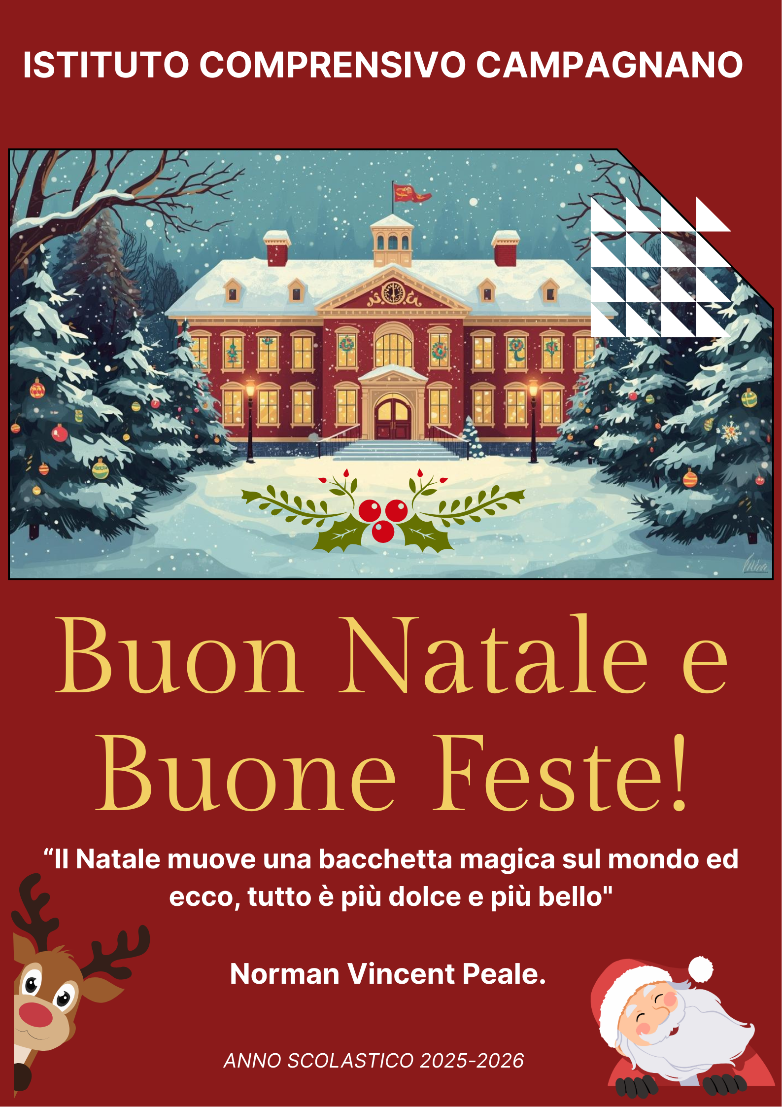 Il Natale rappresenta per la nostra scuola un momento speciale di condivisione, riflessione e vicinanza, nel quale si rinnova il valore del percorso che ogni giorno affrontiamo insieme: un cammino di crescita reciproca, fatto di apprendimento scolastico, culturale e didattico, ma soprattutto umano. Un viaggio che unisce grandi e piccoli, docenti e studenti, nel segno del rispetto, della collaborazione e della scoperta.